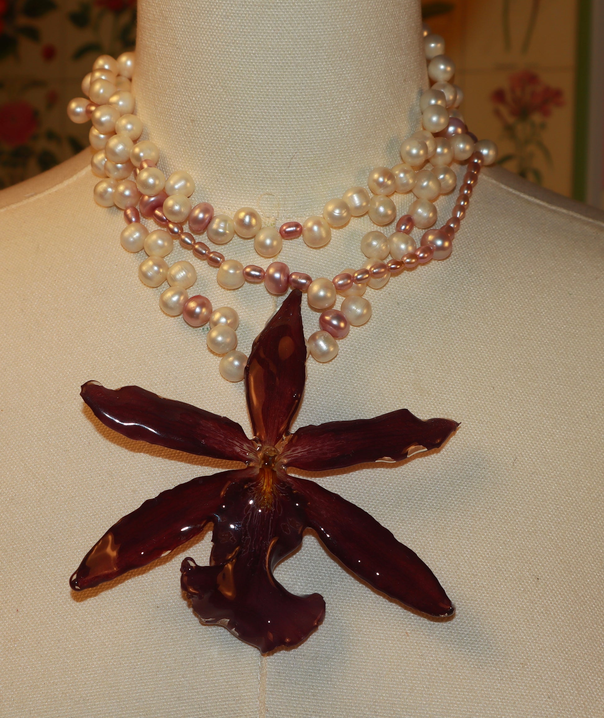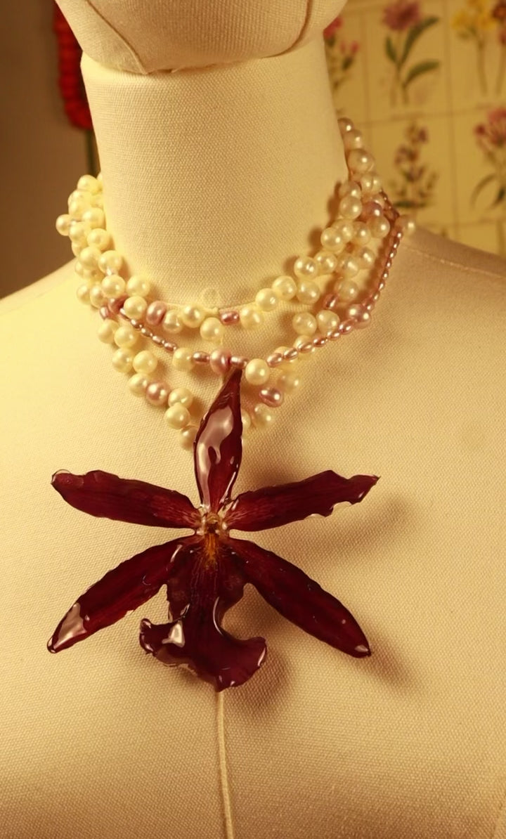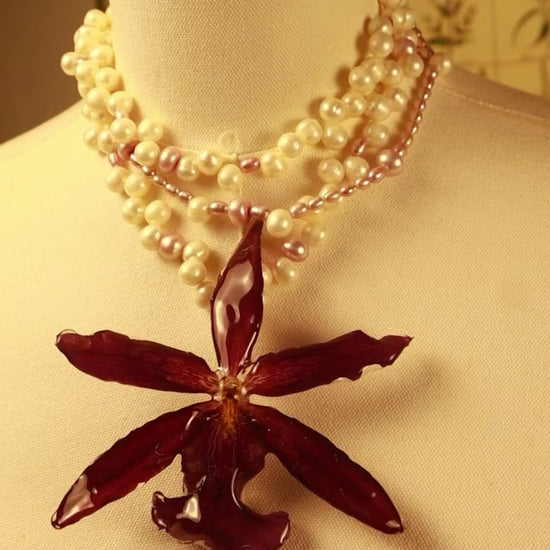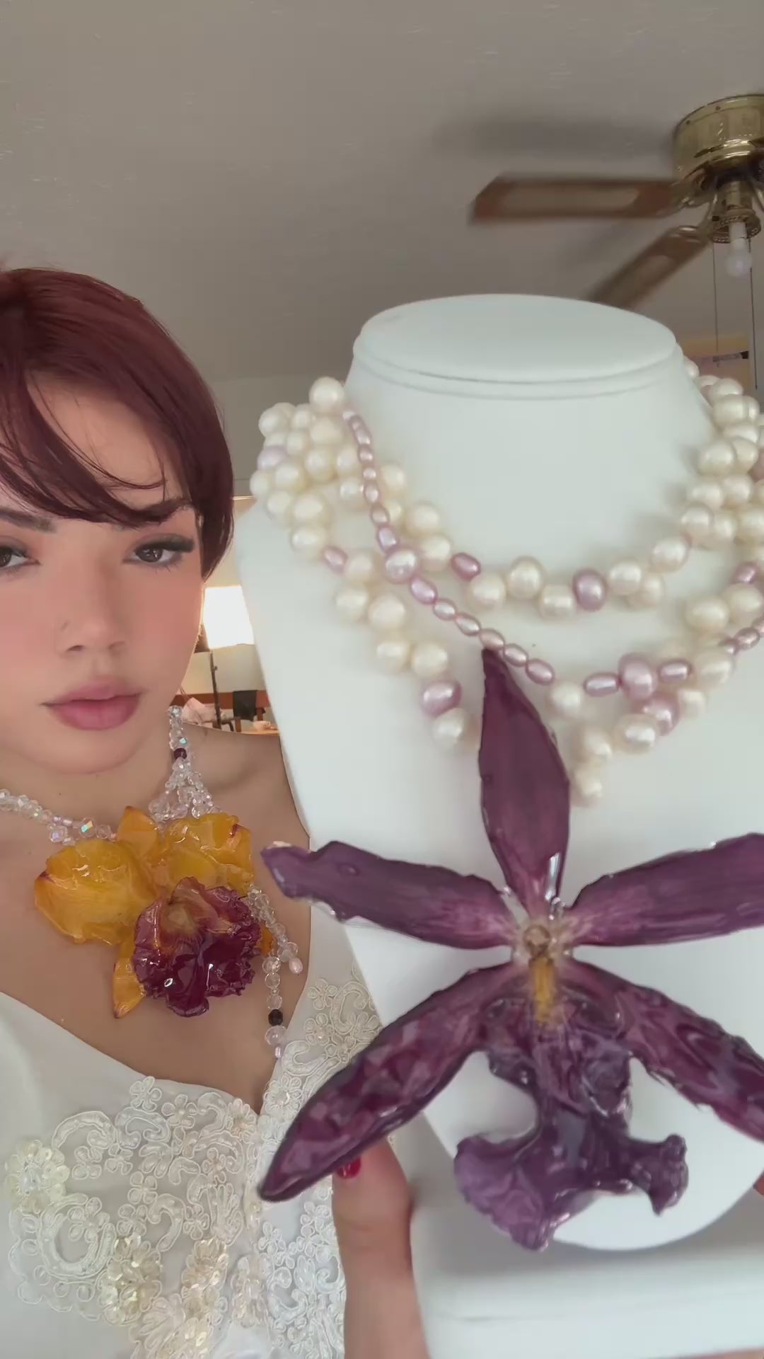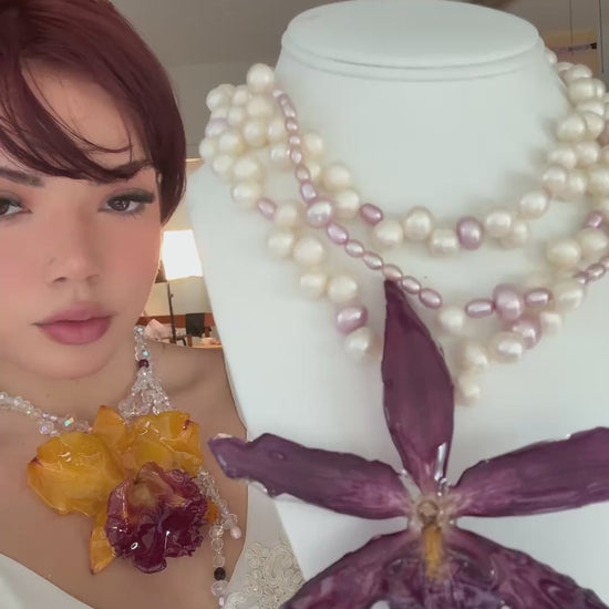 Orquídea Exótica Conservada en Resina, Perlas Naturales de Aguadulce Calidad: AAA de diferentes tamaños y tonalidades