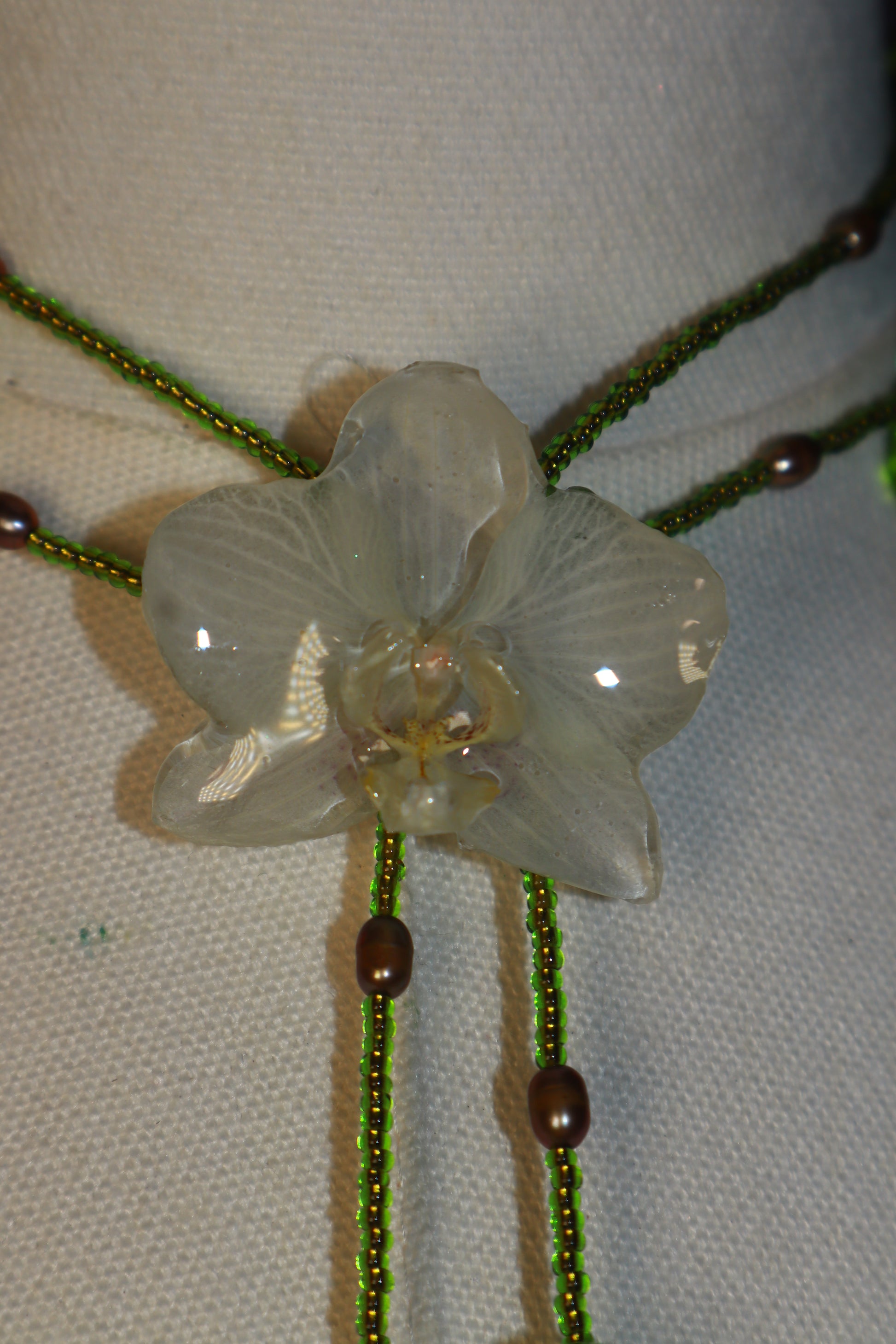 Orquídea Phalaenopsis blanca real, conservada en resina después de un proceso artesanal de varios días.