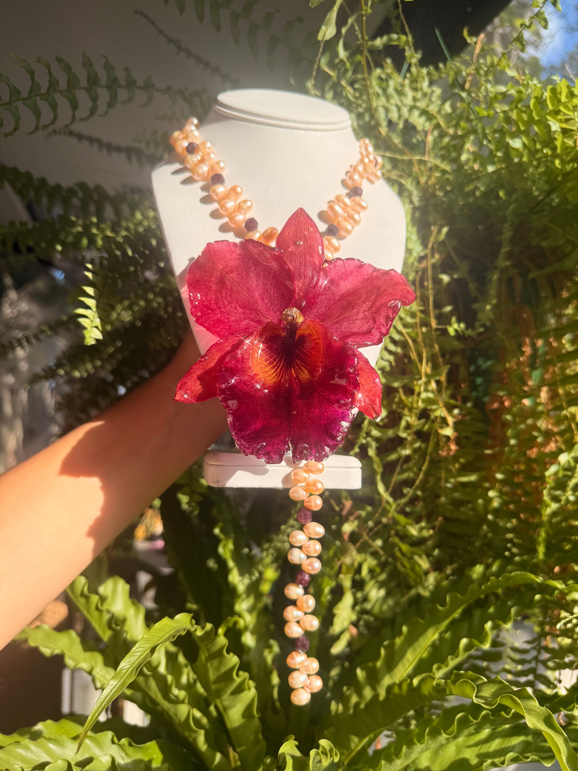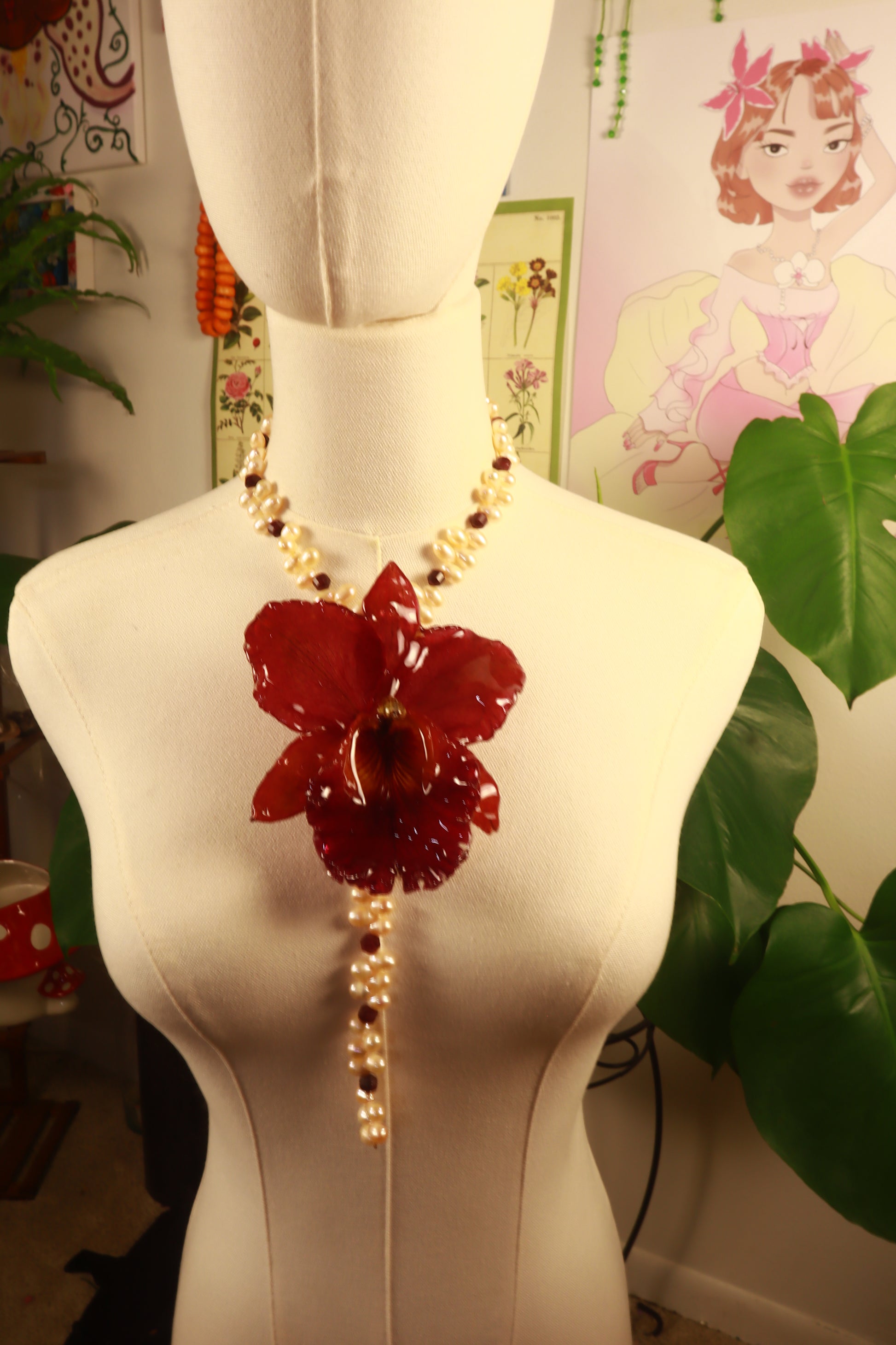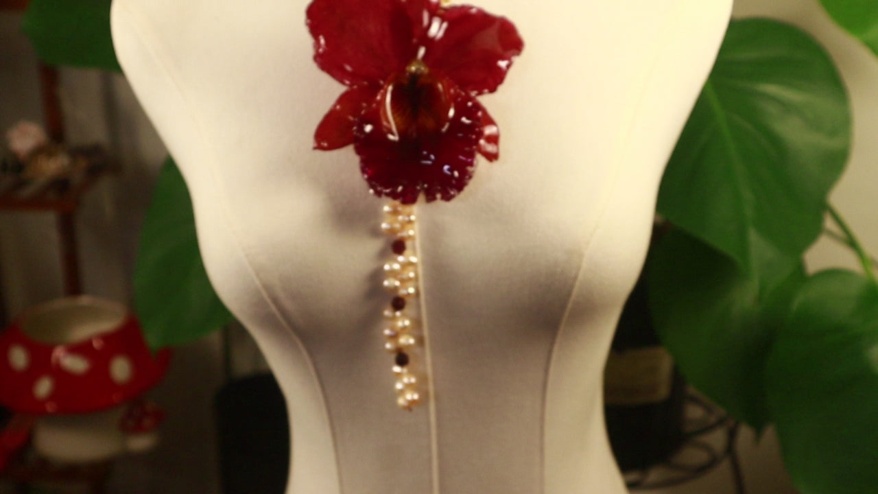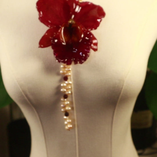 Cattleya Roja Gigante, Perlas de Aguadulce Calidad AAA, Granate Rojo.