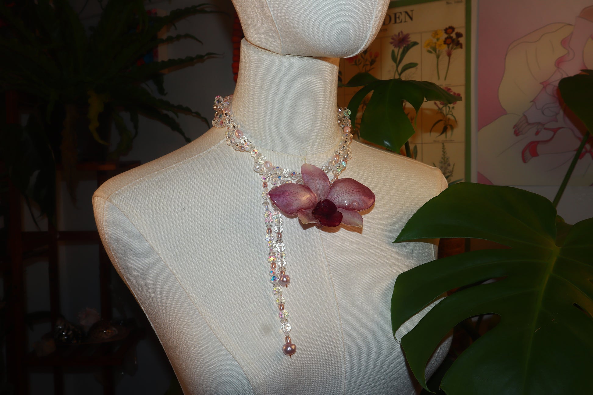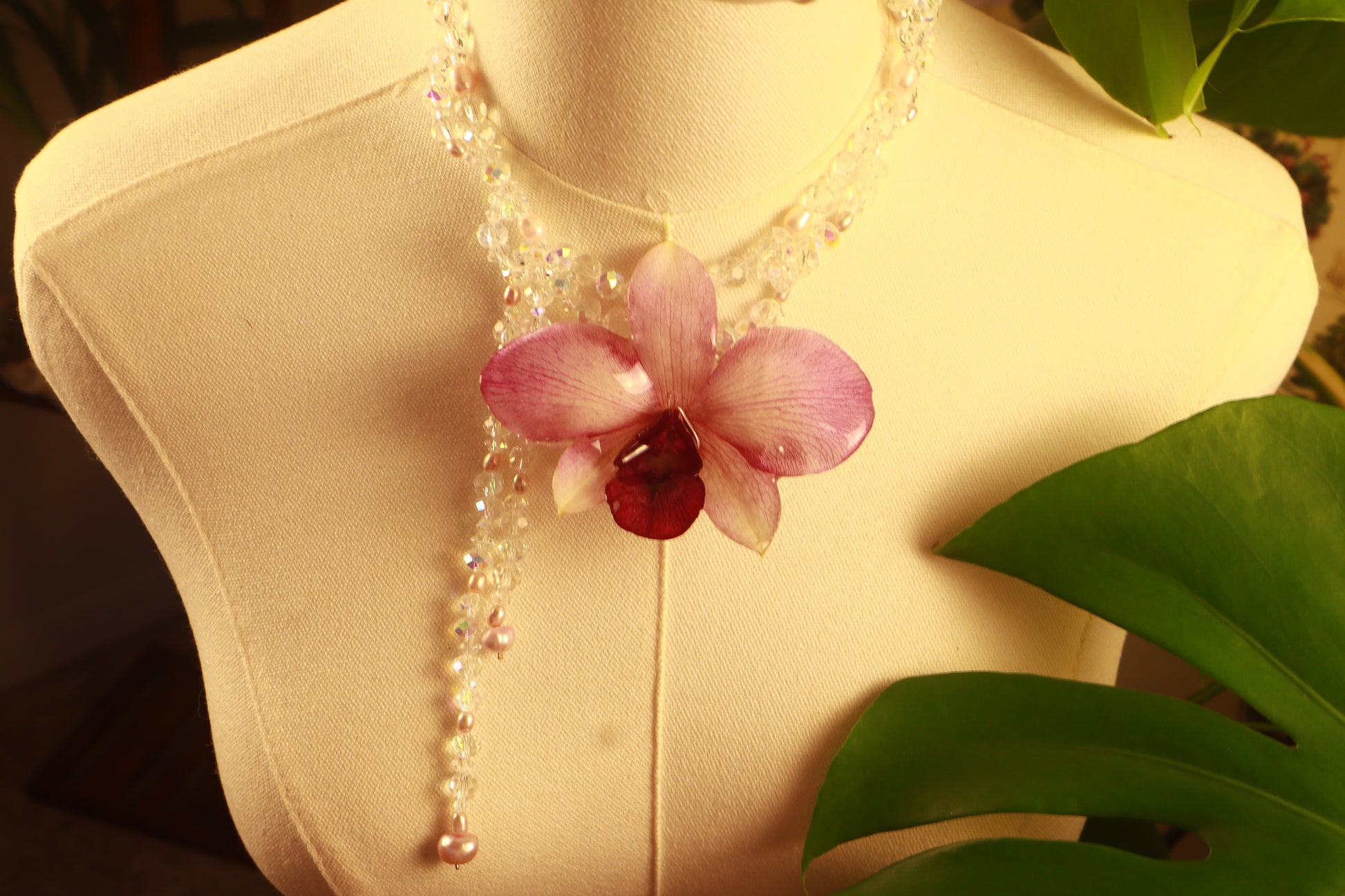 Híbrido de Dendobrium Gigante, cuentas de vidrio de diferentes tamaños, perlas de aguadulce calidad AAA.